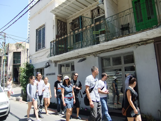 Tourists enjoying the sights of Neve Tzedek